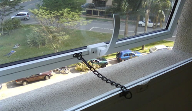 Os limitadores de abertura da Super Telas de Proteção evitam a abertura excessiva de janelas que podem colocar em risco crianças e animais de estimação. Os limitadores são fabricados em ferro com acabamento cromado e a dimensão da corrente varia em função da abertura solicitada pelo cliente. A instalação é efetuada na esquadria da janela.